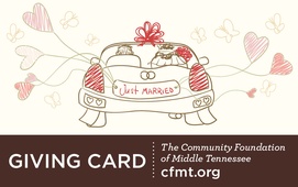 The program helps you honor a loved one, colleague or client with a gift card they redeem to support a worthy cause close to their hearts - as a donation to a charity that fits their passion. Purchase now from Giving Cards pictured here (even more designs are available when you click any "Buy Now" link), or explore our customization options. For custom/bulk orders, call us at 615-321-4939.